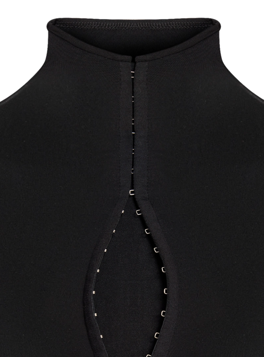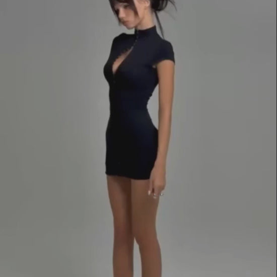 Sleek, sculpted, and undeniably bold — the Akira Mini Dress is designed to contour and flatter in all the right places. Featuring a figure-hugging silhouette, cap sleeves, and a high neckline with a statement front zipper, this piece blends sporty edge with sultry sophistication. The adjustable zip detail allows you to control the neckline, making it as daring or refined as you desire. Crafted from a smooth, stretchy fabric, it moves with your body while maintaining a structured, snatched fit.